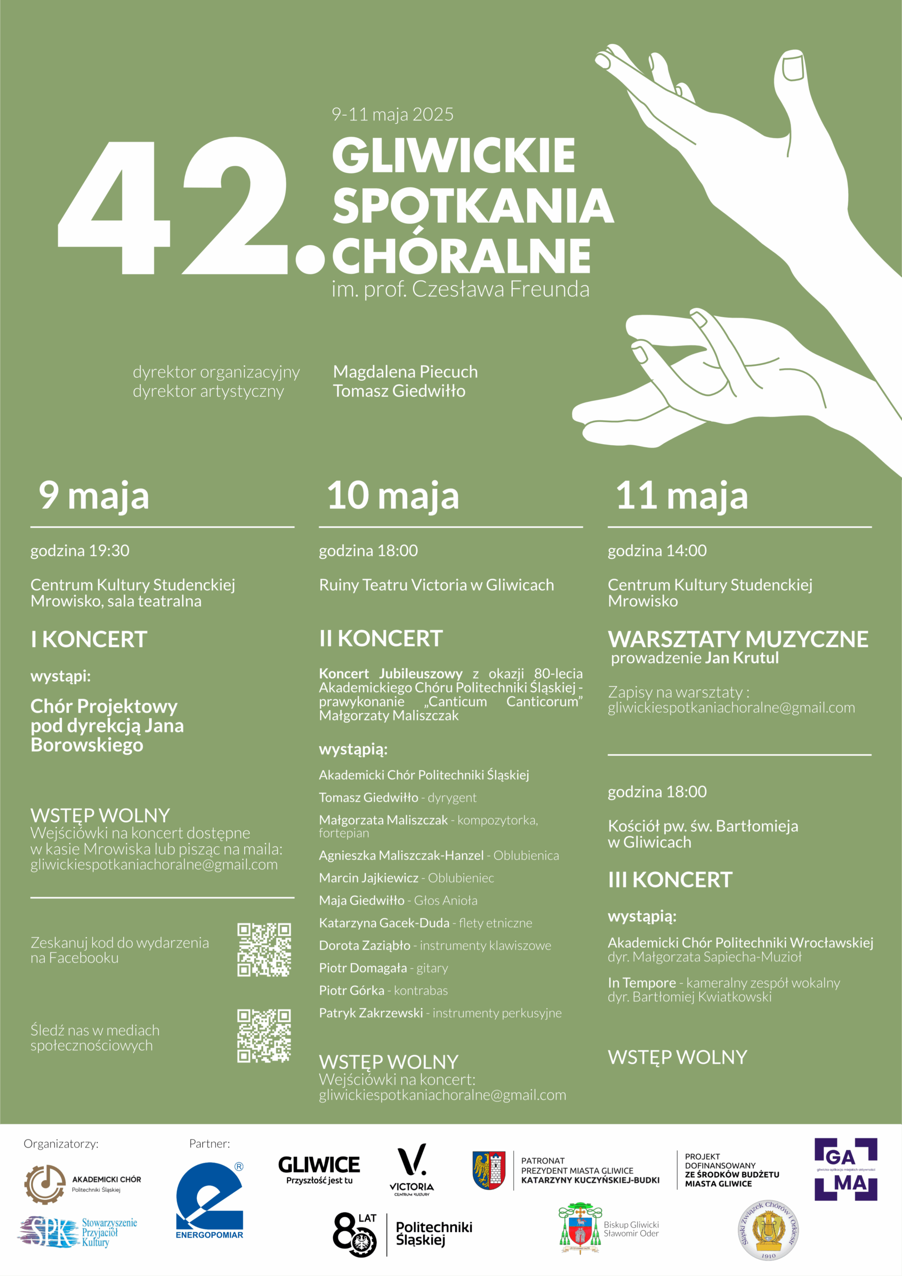Za nami 42. Gliwickie Spotkania Chóralne. Po raz kolejny mieszkańcy Gliwic i okolic mieli okazję obcować z muzyką chóralną. Tegoroczna edycja składała się z trzech koncertów oraz warsztatów wokalnych, które odbyły się w dniach 9 – 11 maja 2025r.
